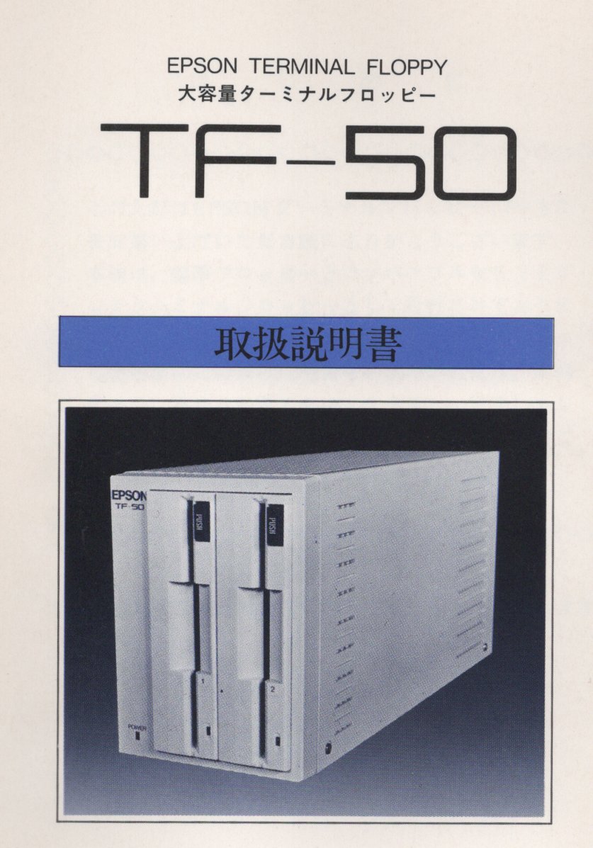 大容量の思い出 2019/06/06 Thu 6364 写真は「EPSON 大容量ターミナルフロッピー TF-50」に添付されていた「取扱説明書」、つまりはマニュアルである。これに5.25インチのフロッピーディスクが2枚挿入できる。記憶容量は1台当たり3.2メガバイト(アンフォーマット時)で1ドライブで1.6メガバイトとされている。実際に使用する際はこれをフォーマットするため容量は1.97メガとなり、1ドライブでは1メガを下回る。これが「大容量」なのである。