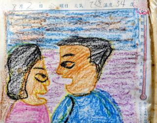 | 4人の物語(122) [20] 2025/12/10 Wed 11180 12月3日 [05]の続き Aが小学3年生の夏休みの日記 1957年7月31日 水曜日 はれ 気温34度 きょうお母さんのきぶんがわるいので、ねせてあげました。その間、ぼくがおちゃわんをあらったりしました。夕方は、お母さんがおきたので、あんしんして日記を書きました。 母親は無理をしがちである。日記には布団に寝ている母親の絵が描かれている。夏休みの子どもができることは茶碗を洗うことくらいだったのだろう。この日の気温は34度、エアコンは、その存在すら想像すらできないころである。Aのうちには扇風機もなかった。家中の窓を開け放しにしていたのだろう。 |